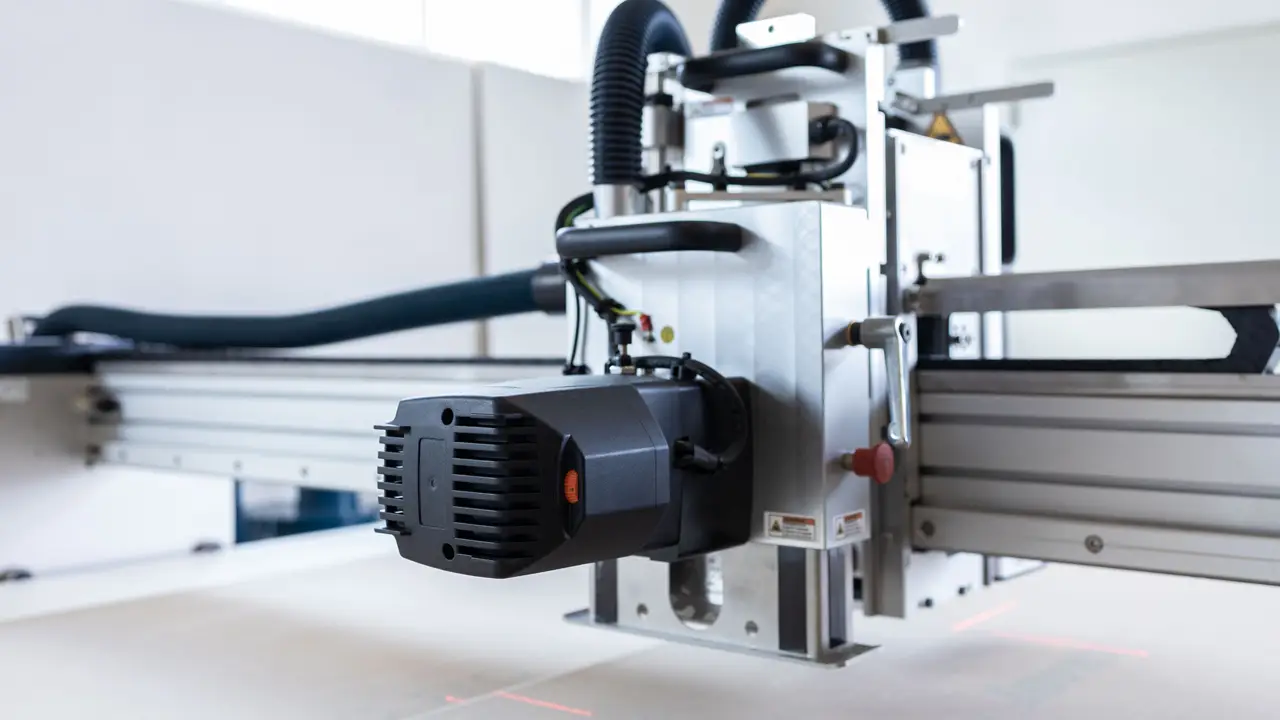 - Fest eingebaute Laser mit Kreuzdarstellung zeigen den Fräsermittelpunkt und vereinfachen das Positionieren und Einmessen