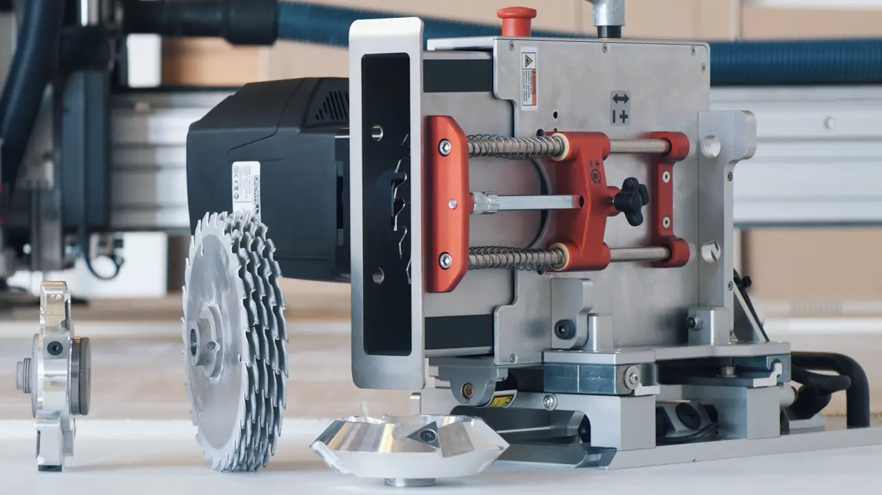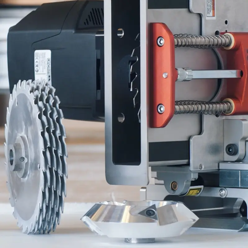 Durch wechselbare Aggregate bietet der Säge- und Frästisch VCUT Serie eine unglaubliche Bearbeitungsvielfalt von Fräsen, Sägen und Duplizieren.